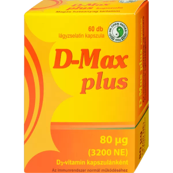 D-Max Plus D-vitamin - A modern életvitel mellett könnyen előfordulhat, hogy a szervezet nem jut elegendő mennyiségben D-vitaminhoz, különösen a téli hónapokban. Ebben a kritikus időszakban ajánlott a D-Max Plus D3-vitamin kapszula szedése, hogy támogassuk testünk különböző funkcióit és megőrizzük egészségünket.
