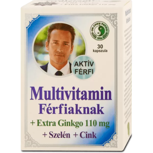 A férfiak szervezetének igényeit figyelembe vevő komplex multivitamin készítmény gyógynövényekkel, szelénnel és cinkkel, extra Ginkgo tartalommal.