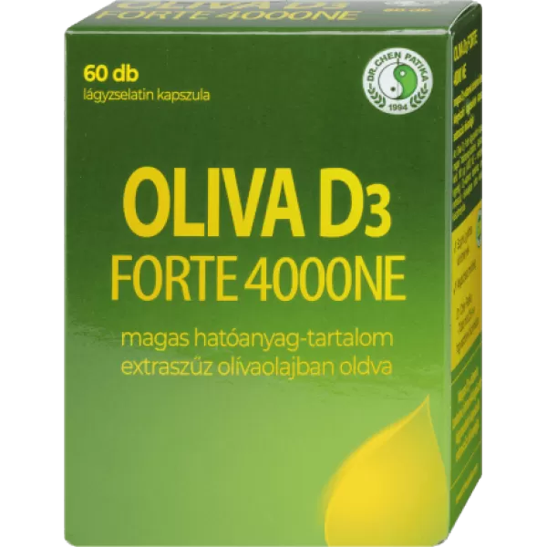 Az Oliva D3 Forte magas hatóanyag-tartalmú, kapszulánként 100 µg (4000 NE – nemzetközi egység) D3-vitamint tartalmaz, amely extraszűz olívaolajban oldva kerül a készítménybe.
