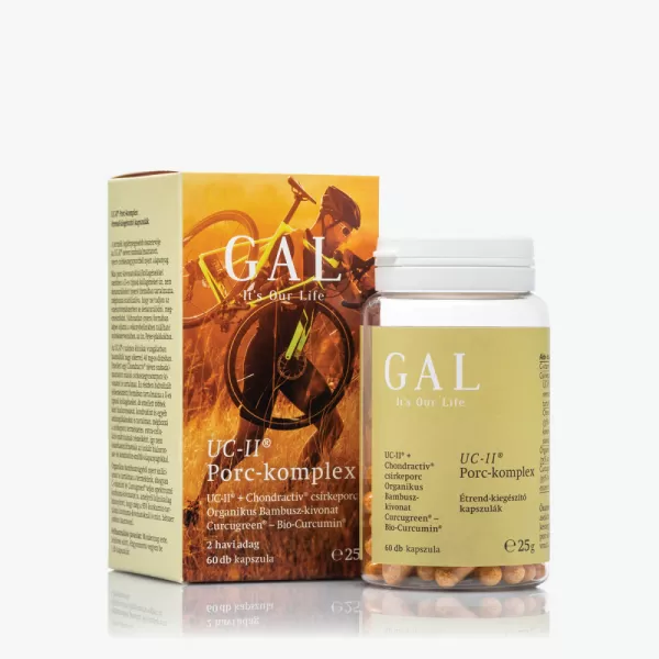 A GAL UC-II® Porc-komplex leglényegesebb összetevője az UC-II® néven szabadalmaztatott, nyers csirkeszegyporcból nyert alapanyag. Más porc-kivonatokkal/kollagénekkel szemben a II-es típusú kollagéneket ún. nem denaturálódott (nyers) formában tartalmazza, méghozzá stabilizálva, hogy ne tudjon az emésztőrendszerben se denaturálódni, megemésztődni.
