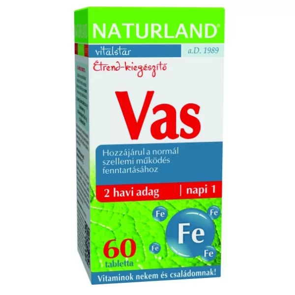 A Naturland vas tabletta hozzájárulhat a normál szellemi működés fenntartásához, a fáradtság és a kifáradás csökkentéséhez, a normál vörösvérsejt- és hemoglobin képződéshez, valamint az immunrendszer normál működéséhez.