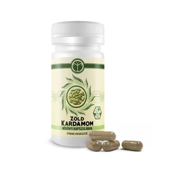 100% szárított, porított Zöld kardamom, növényi cellulóz kapszula.